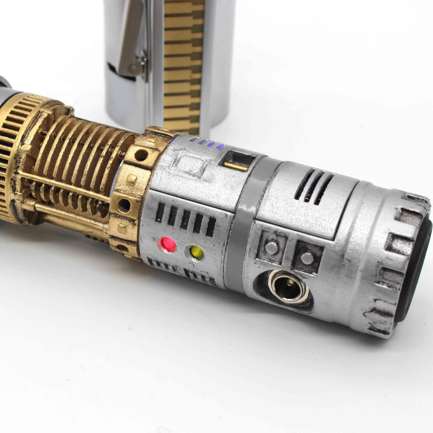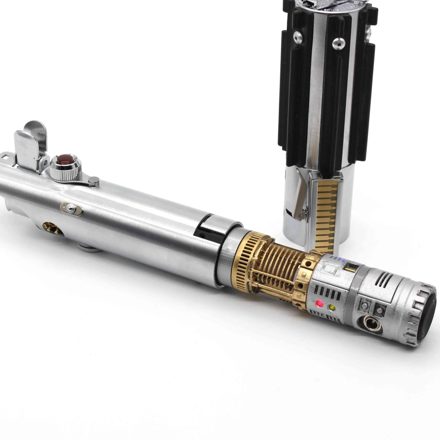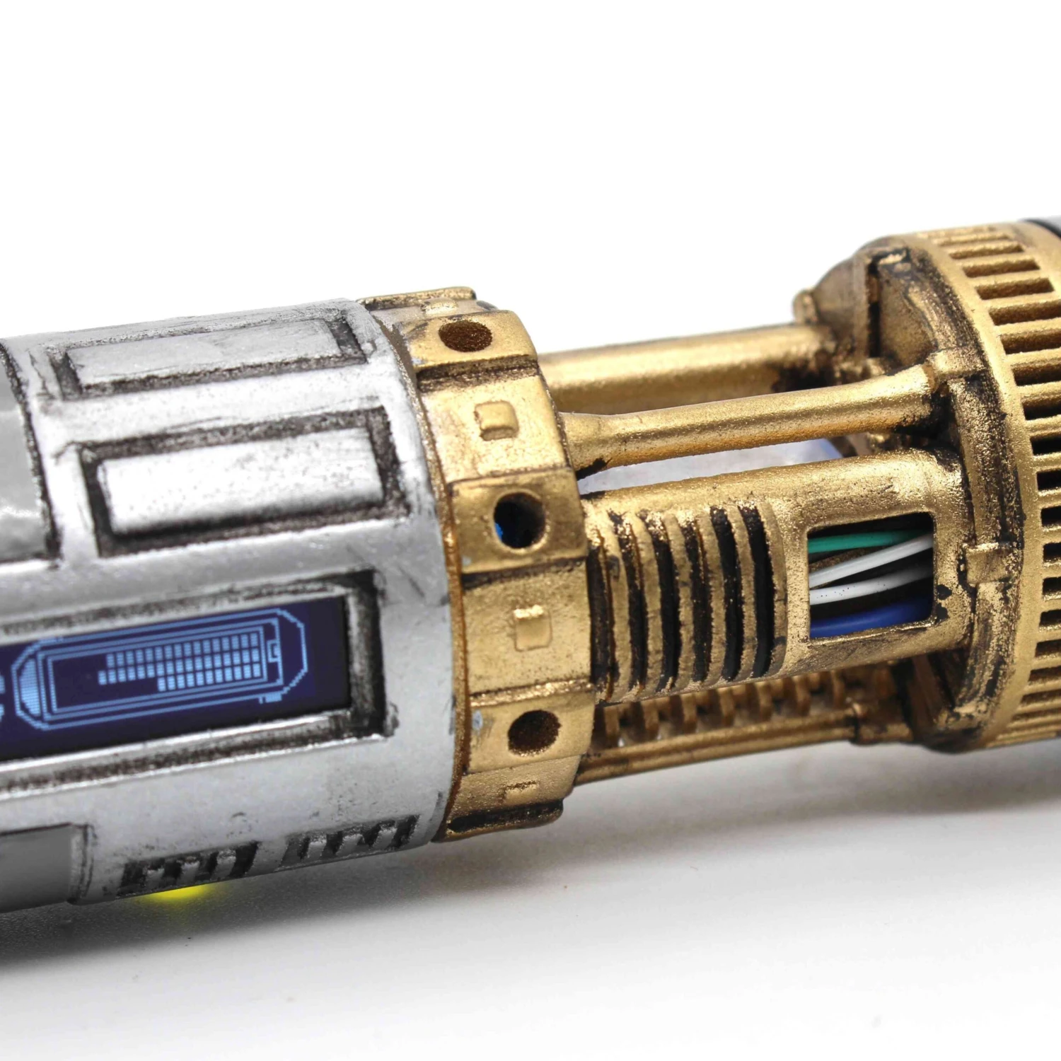 The original lightsaber that started it all. This 89 sabers graflex can be configured to A New Hope, Empire strikes back and The force awakens. Installed by Chris at Sabersense, using his incredible Warrior chassis, featuring full crystal chamber with genuine quartz crystal, accent LED’s, two summary operation, and OLED screen. The chassis is 3d printed and the painted and weathered to give extra realism. This saber comes with a 1″ blade. Collectors Edition magazine included. Not designed for duelling