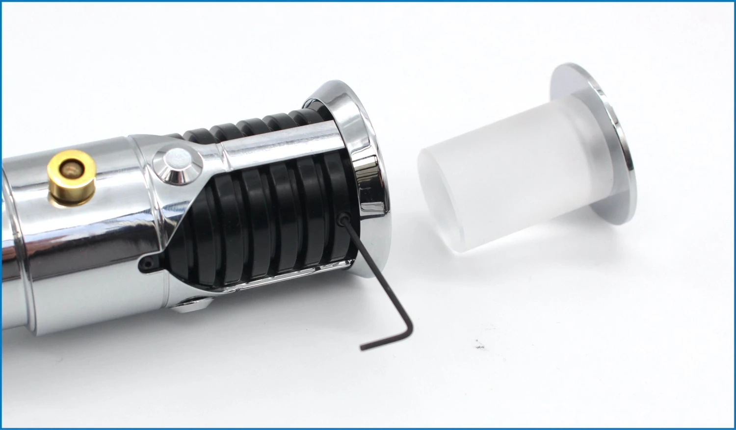 KR Sabers is on of the most the most sought-after and collected saber makers in not only the UK but the whole world. He has teamed up again with One Replicas to produce this incredibly accurate Obi Wan Inspired hilt from Episode 2 “Attack of the Clones” . Made from AL6061 and Brass, the brass parts have been beautifully chrome plated giving the hilt a very hefty feel. Installed by Blackstar Sabers with a 3d printed chassis by Goth3Designes. This sabers comes with a 1″ x 36″ blade. This saber is not designed for duelling. Collectors edition magazine included.