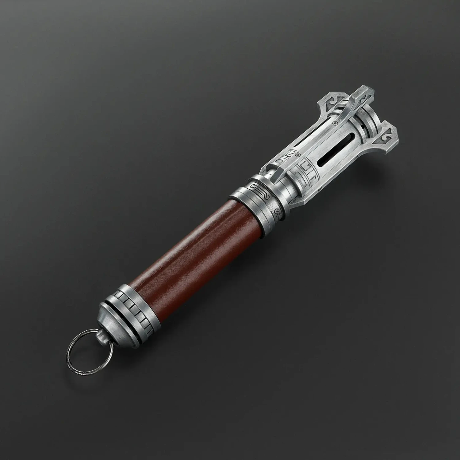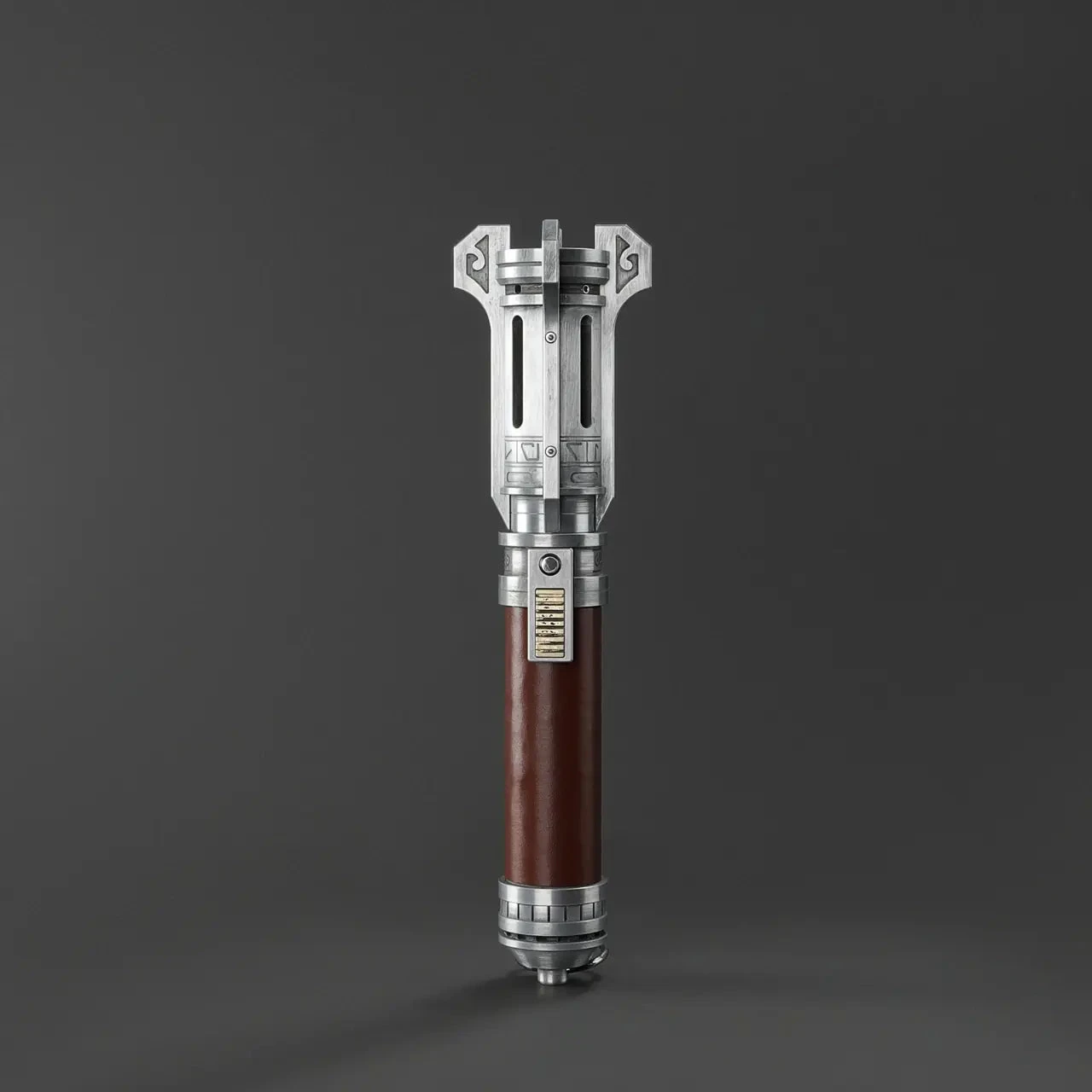 The Model Relic is a rare fusion of elegance and history — a combat saber that feels like it belongs to an ancient order, long forgotten among the stars. Featuring an intricately engraved emitter, weathered metallic finish, and a rich leather-style wrapped hilt, this saber stands apart from modern designs with a refined, almost ceremonial presence.