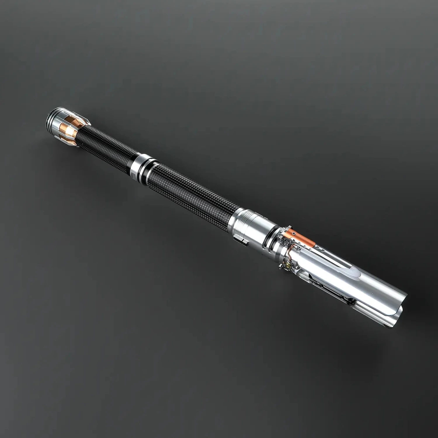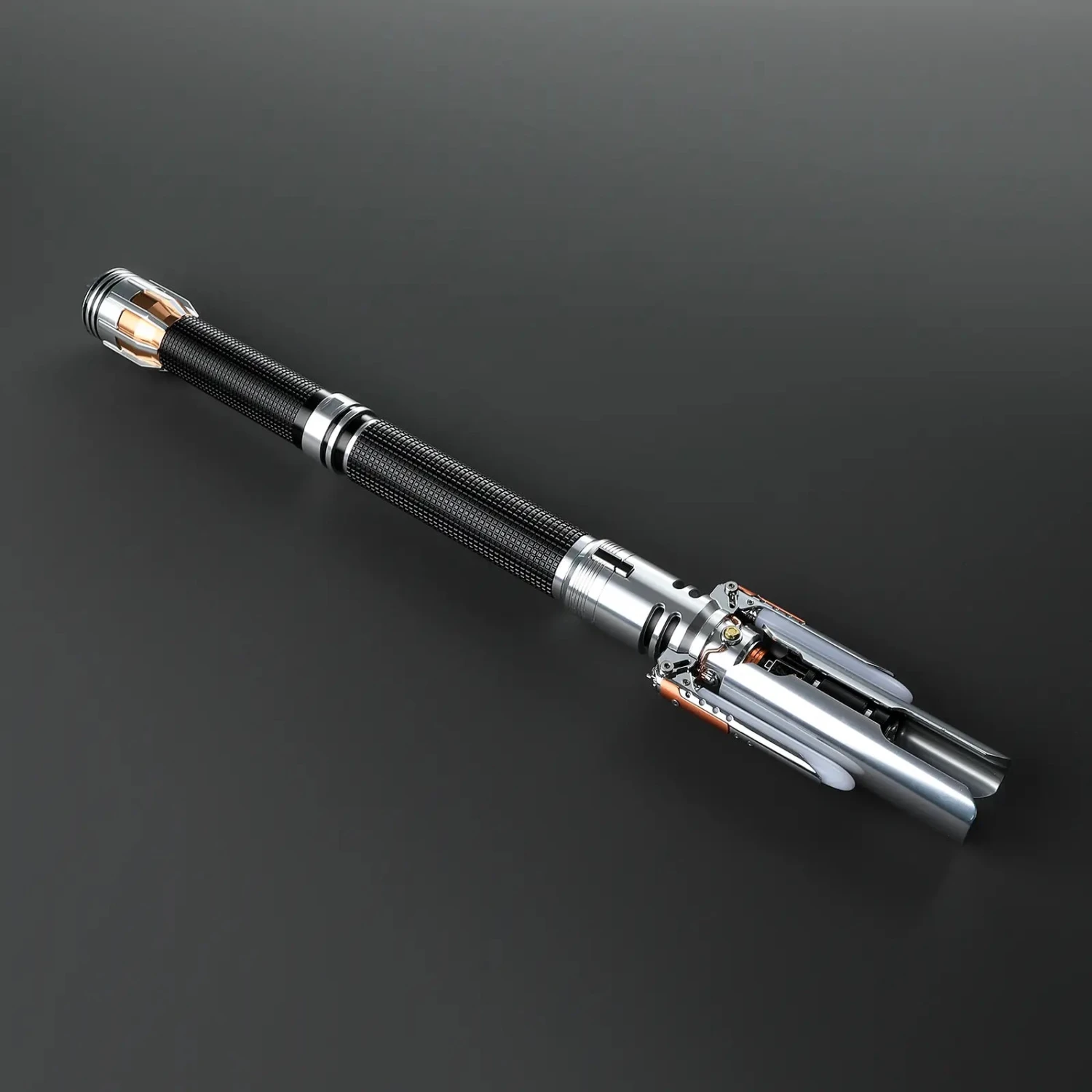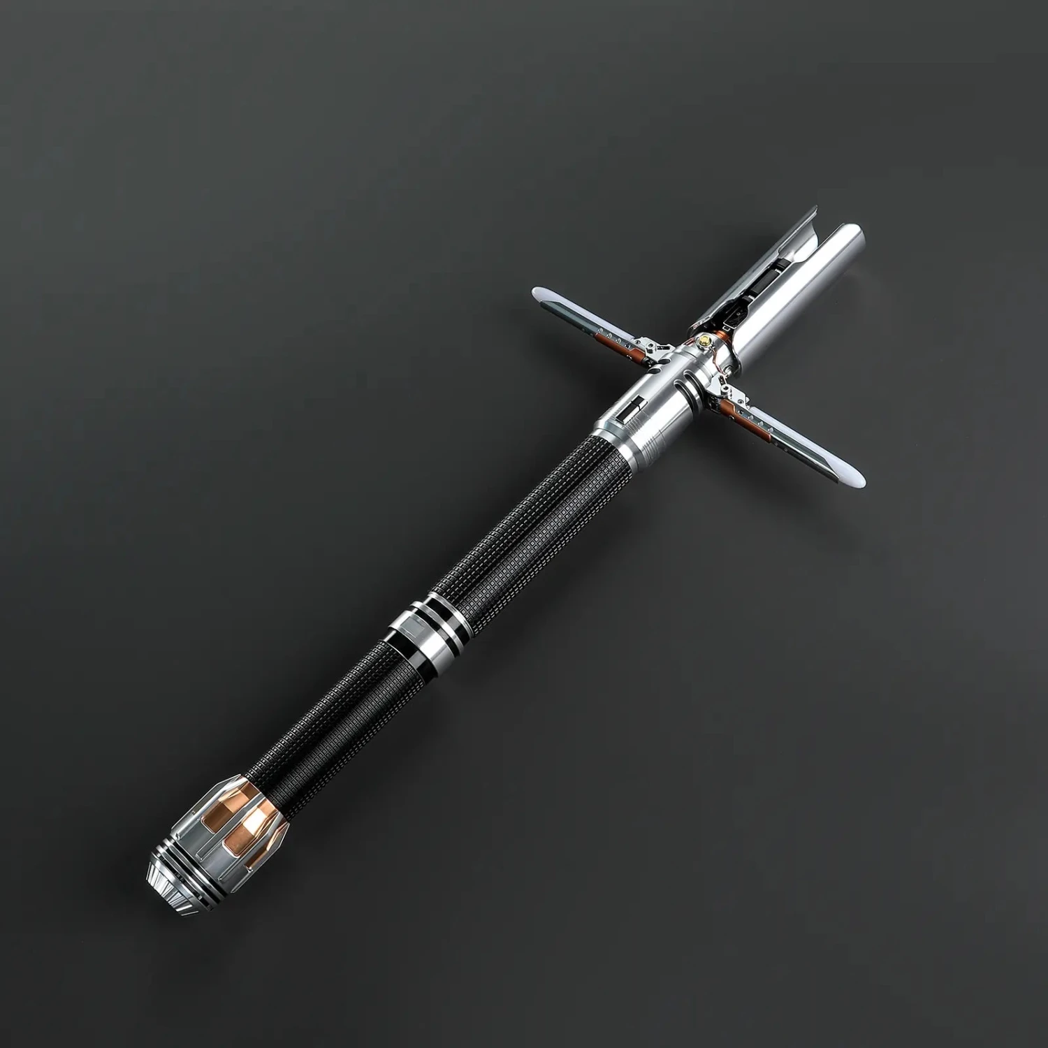 Introducing the Crossguard Saber – Model Cal V4, a must-have for any Jedi enthusiast. Inspired by Jedi: Survivor, this saber features folding Neopixel side blades, making it one of the most unique designs on the market. Give in to the temptation and add this game-inspired saber to your collection today!