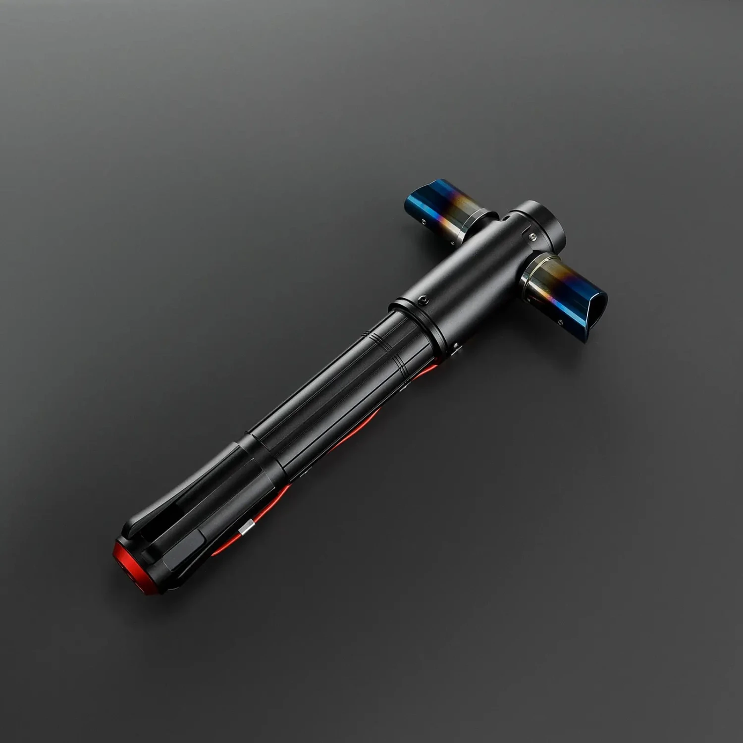 Featuring a bold crossguard design, this saber uses a streamlined Eco Pogo Neopixel core, offering solid performance with simplified internals: