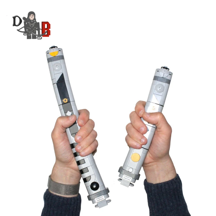 Build your very own custom-designed Fulcrum curved white sabers out of genuine LEGO® pieces. The product comes unassembled in a resealable pouch, with a revealable QR code on the front to download the instructions and build the product as pictured with the stand included.