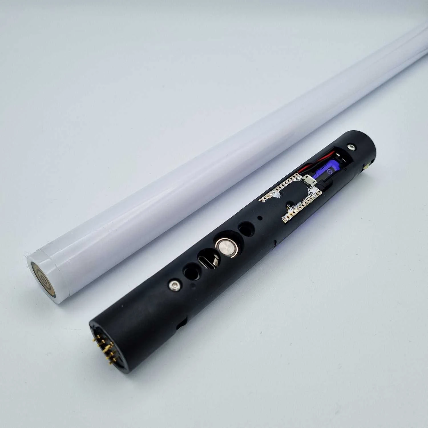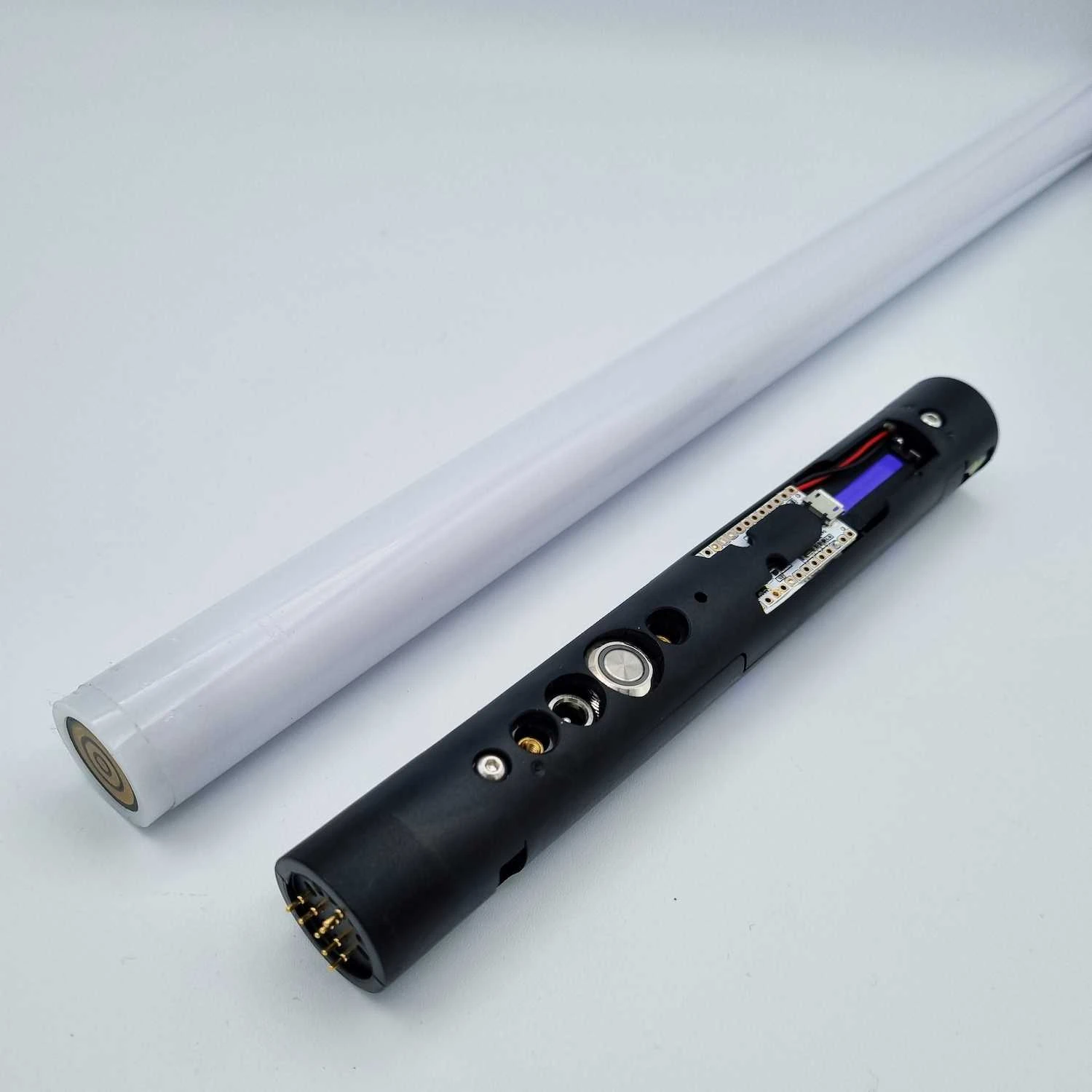Attaching the blade to the core without the core being securely installed in a hilt can cause the core and blade to short out. Please be advised that damage caused in this manner is not eligible for a refund or return.