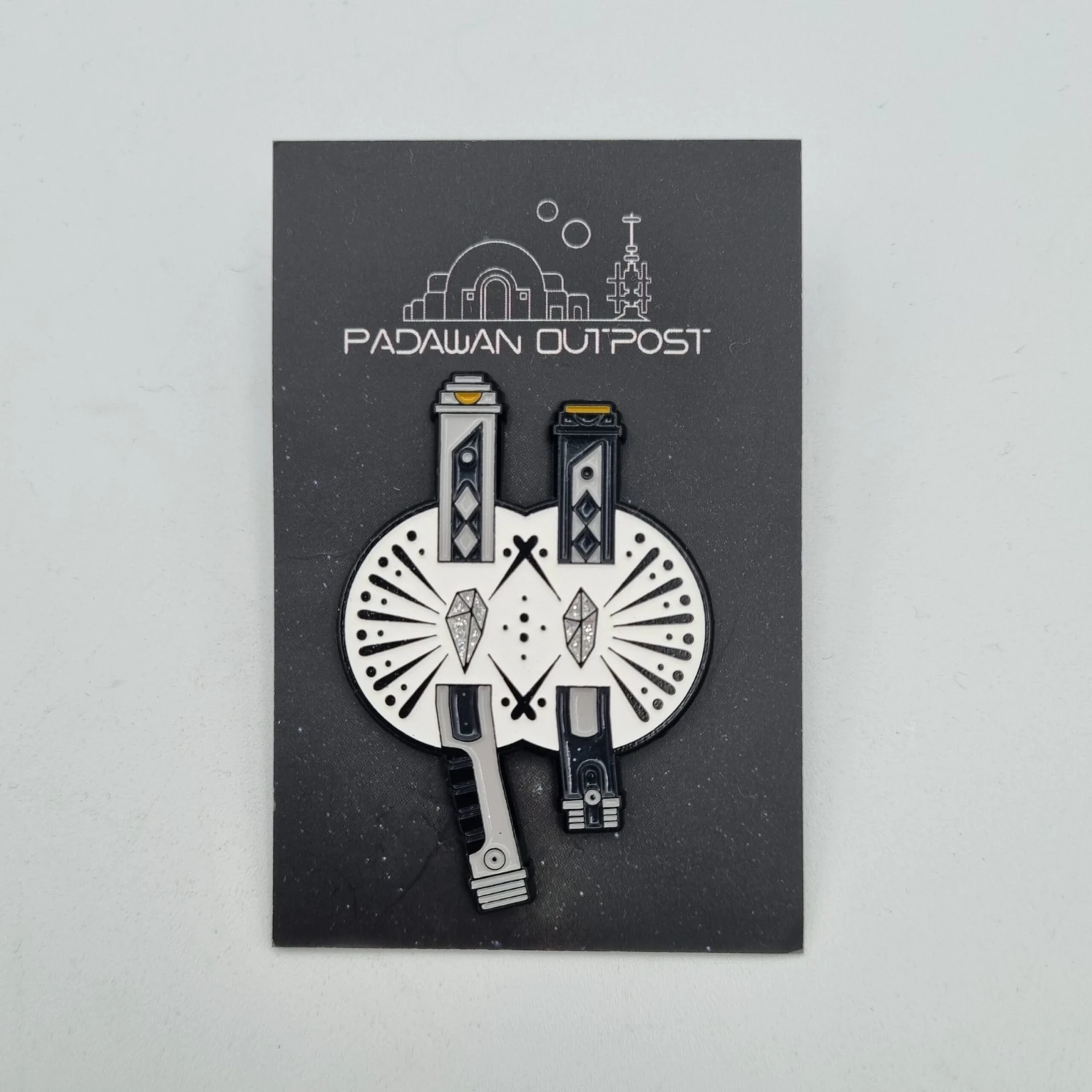 Glow in the dark collectors pin badges. Enamel pin badge with crystal overlay.